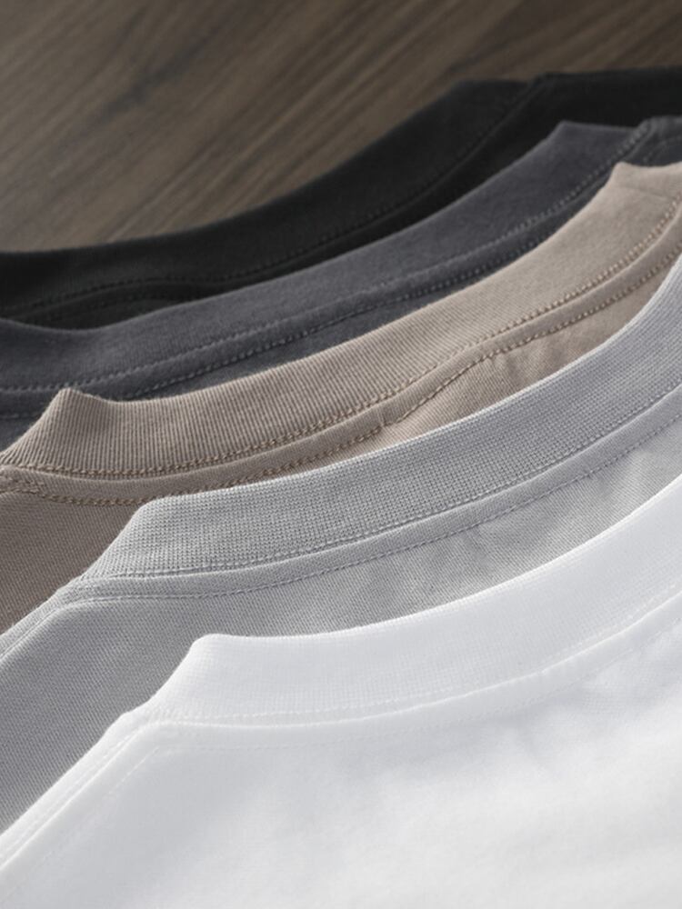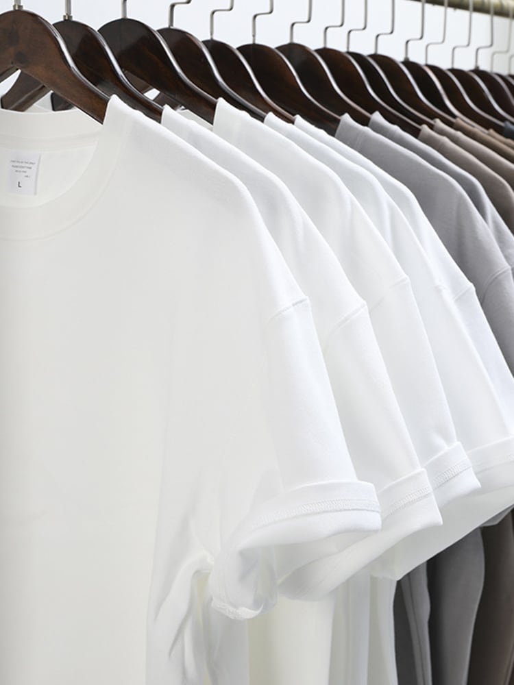 FORN3 厚手 無地 ベーシック ラウンドネック 半袖 ストリート カジュアルTシャツ