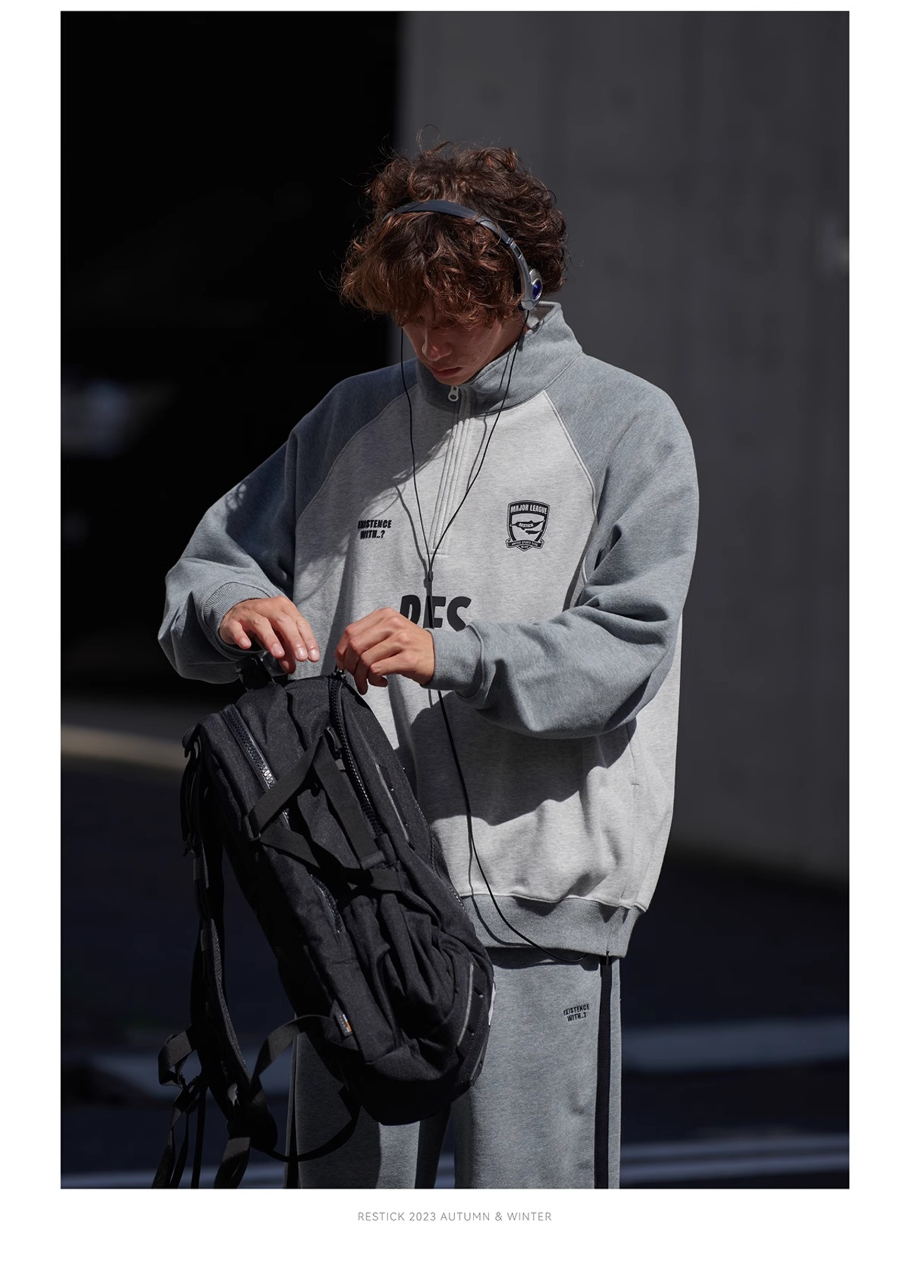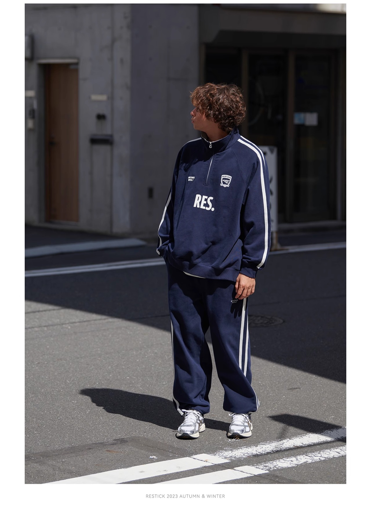 RESTICK ヴィンテージ風 ハーフジップ スウェット シャツ