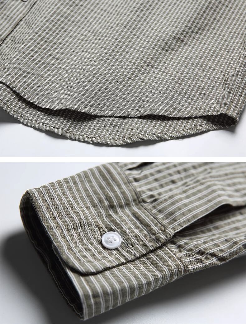 このストライプ柄長袖シャツは、カジュアルなスタイルとシンプルさを融合させた一着です。清潔感のあるストライプデザインは、日常のコーディネートにアクセントを加え、さまざまなシーンに対応します。適度なゆとりのあるシルエットで、動きやすさと快適さを兼ね備えています。綿素材を使用しており、肌触りが良く、長時間の着用でも快適さをキープします。おしゃれを楽しみながら、リラックスできるアイテムとして、オールシーズンで活躍します。